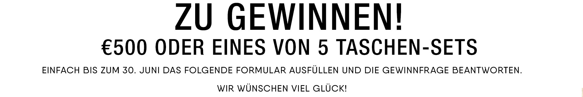 Wir verlosen sechs Preise: fünf 4-teilige Lands' End Taschen-Sets sowie einen Lands' End Einkaufsgutschein im Wert von €500. Der Gewinner wird per Zufallsprinzip aus allen gültigen Einträgen gezogen und wird per E-Mail innerhalb von 14 Tagen informiert. Der Rechtsweg ist ausgeschlossen und jede Korrespondenz zur Verlosung wird abgelehnt. Kann der Gewinner nicht innerhalb von 14 Tagen nach der Ziehung kontaktiert werden, behält sich Lands’ End das Recht vor, den Preis zurückzuziehen und dem Reserve-Gewinner zukommen zu lassen, der zum gleichen Zeitpunkt gezogen wird wie der erste Gewinner. Der Gewinn wird ausschließlich als Sachpreis zugeteilt und kann nicht gegen einen anderen Gewinn oder gegen Bargeld eingetauscht werden. Der Preis ist nicht übertragbar. Lands’ End behält sich vor, die Gewinnspielbedingungen jederzeit ohne Ankündigung zu ändern. Mit Teilnahme an der Verlosung erklären sich alle Teilnehmer einverstanden, dass Sie von Lands’ End zu Marketingzwecken kontaktiert werden dürfen. Die Gewinnziehung erfolgt nach gültigem deutschem Recht. Registrierte Adresse des Veranstalters: Lands’ End GmbH, In der Langwiese, 66693 Mettlach